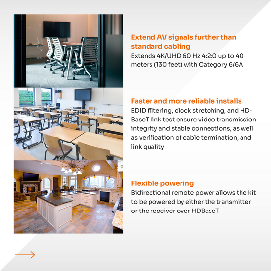 The Atlona AT-AVA-EX70C-BP-KIT is an Avance™ Series HDBaseT extender kit that supports control pass-through and bidirectional remote power capabilities.