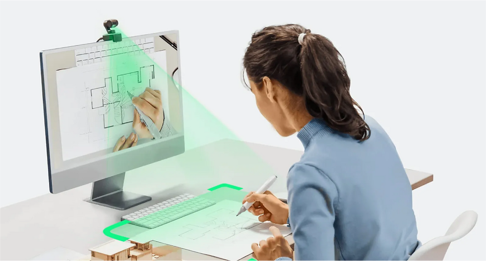 DeskView Mode: Need to show off a physical document, a sketch, or a product on your desk? Simply toggle DeskView, and the camera automatically tilts down and corrects the perspective to show your tabletop perfectly.